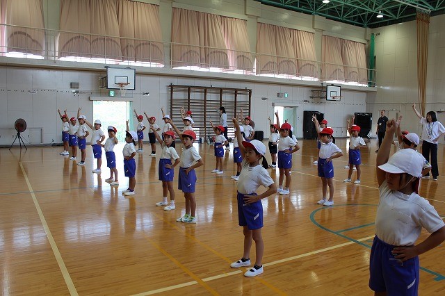 プログラム1「準備体操(ラジオ体操)」の練習をしました。