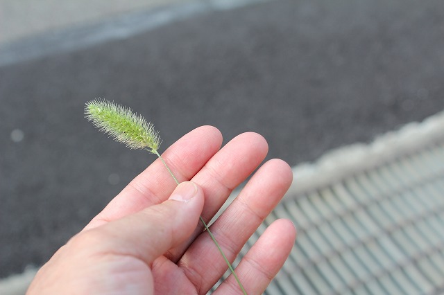 登校した児童に、今朝もねこじゃらしをもらいました。