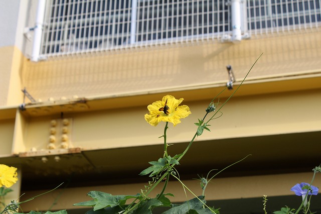 学校に1つだけ残っている朝顔。