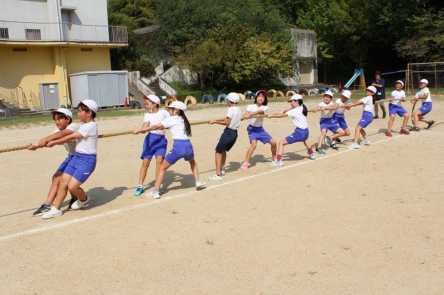 中学年は団体競技(綱引き)の練習でした。