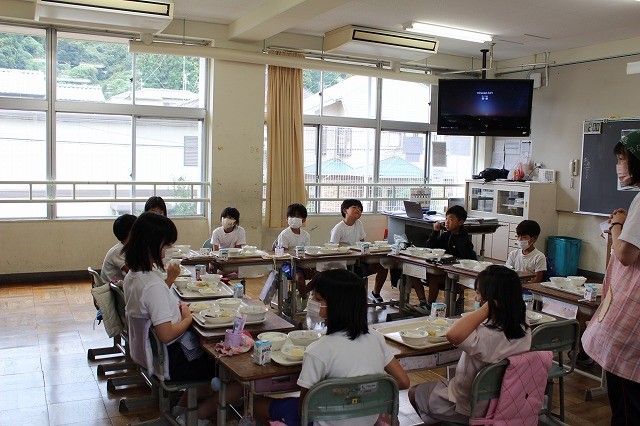 3年生の教室で給食指導をしました。