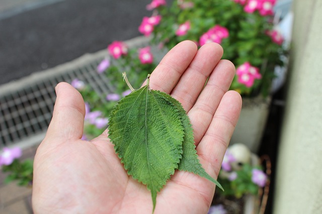 今朝は登校した児童にシソによく似た葉っぱをもらいました。