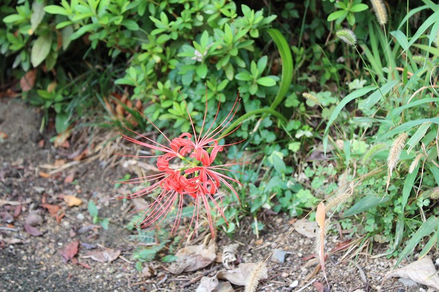 学校の敷地内に、一輪 彼岸花を見つけました。