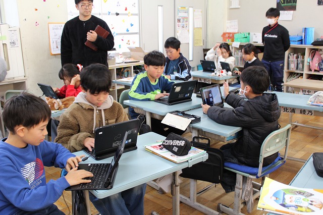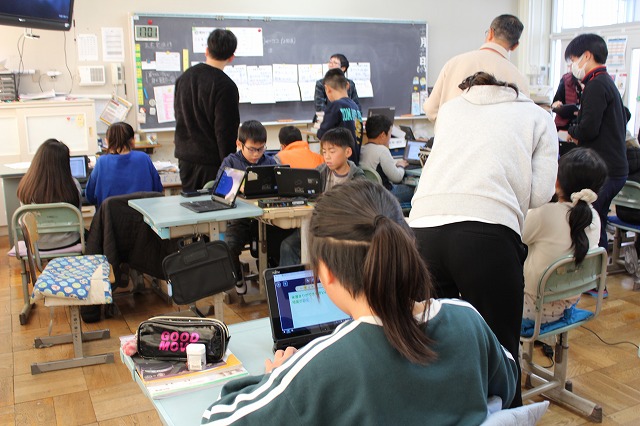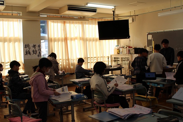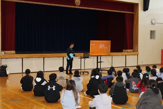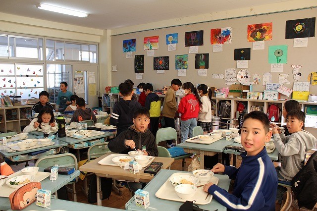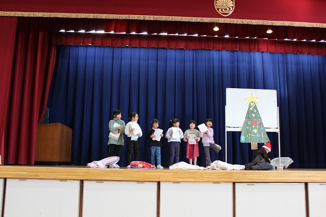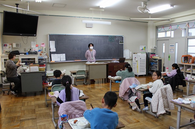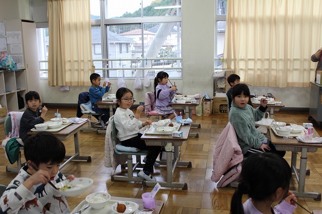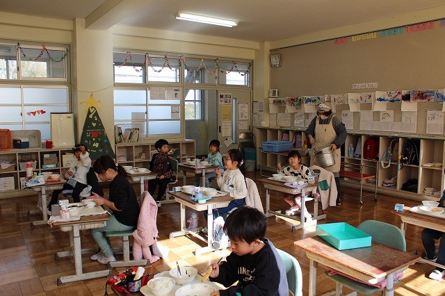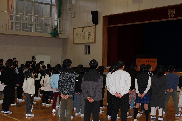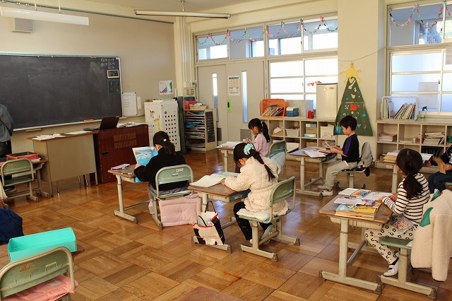 | 12月24日(水) 学校の様子 2学期の最終日を迎えました。 ![]() ~終業式の様子~ 冬休みの過ごし方や、来年についての話を聞きました。 ![]() ![]() ~学級での様子~ 2学期の振り返りや冬休みの宿題の話がありました。 ![]() ![]() 通知票も配られました。 ![]() ![]() ![]() ~大掃除の様子~ ![]() ![]() ![]() 明日から14日間の冬休みが始まります。 事故・病気等に気を付けてお過しください。 ![]() ![]() 次回の登校日は、来年1月8日(木)です。 元気な笑顔に会えることを楽しみにしています。 12月23日(火) 学校の様子 今日は、多くの学年でお楽しみ会が開催されました。 ![]() ![]() ![]() ![]() ![]() 明日は、いよいよ2学期最終日です。 12月22日(月) 学校の様子 1・2年生が、今年畑で育てたサツマイモを使って、 調理をしました。 ![]() ![]() ![]() 添え手は「猫の手」で、おいもを切ります。 ![]() ![]() ![]() ![]() おいもを茹でで、冷ましている間、 おいもに関する読み聞かせを聞きました。 ![]() ![]() ![]() 中にフルーツを入れて完成。 美味しく食べました。 12月19日(金) 学校の様子 今朝は寒い中の登校でした。 ![]() 隣家の煙突からも、暖房の煙が昇っています。 ![]() 小吹台の今朝の気温は0度だったそうです。 ![]() 児童の服装も、冬らしくなりました。 ![]() 通常の授業をしているクラスもありますが、 2学期のまとめをしているクラスが多くなりました。 ![]() ![]() ![]() ![]() ![]() 来週になると、お楽しみ会的な 学期末の学級行事が始まります。 ~~~~~~~~~~~~~~~~~~~~~~ 冷え込んだ校舎外の様子 ![]() 12月後半でも、一部のヘチマはまだ青いままでした。 ![]() なかよし学級の畑の大根は、そろそろ収穫の時期です。 ![]() 池の氷はまだ張っていませんでした。 ![]() 後4日で、2学期も終了です。 体調を崩さず、元気に登校してほしいです。 12月18日(木) 学校の様子 今日は、2学期の給食の最終日でした。 ↓こちらがメニューです。 令和7年12月18日(木曜日)の給食/千早赤阪村 昨日は、苺やミニケーキがついたクリスマス風でしたが、 今日は、中華風でした。 ![]() ![]() 村の給食は、とても美味しくて、子ども達も大好きです。 ![]() ![]() 中には少食などの理由で苦手な児童もいますが、 出来るだけ沢山食べることができれば、と思います。 ![]() ![]() 明日からは給食がなくなり、下校時刻がさらに早くなります。 よろしくお願いします。 12月17日(水) 学校の様子 4年生が、2学期の理科の授業で学習した単元の中から、 「毎日の生活に生かせる」と思うことをで選び、 それを更に詳しく調べ、まとめる活動をしました。 ![]() ![]() ![]() 本やインターネットから情報を集め、 個人またはグループでまとめます。 ![]() ![]() ![]() 次の時間で発表し、友達から意見・感想をもらいます。 ![]() 2学期の学習の振り返りができ、 学習と生活を結び付けて見直す、よい活動でした。 どの子も、自分の疑問や気付きを調べていました。 12月15日(月) 学校の様子 給食の時間、村給食センター栄養指導教諭の先生が、 1年教室で、給食指導をしました。 ![]() ![]() 上手な箸の持ち方(おはし指導)でした。 ![]() ![]() 元々上手に持てる児童もいましたが、 教わった様に、一生懸命箸を使っていました。 12月11日(木) 学校の様子 毎週木曜日は、外国語活動・外国語があります。 ![]() 村のALTが分かりやすく授業の補助をしてくれます。 ![]() 12月は「クリスマス」に関する学習・活動です。 ![]() "What Christmas presents do you want?" ペアで聞いたり答えたりします。 ![]() この時間の前の1年生の授業では、 クリスマスに関する単語や歌で、ゲームなどを楽しみました。 お昼の放送も「クリスマス ソング」特集でした。 もう気分はクリスマスです。 12月10日(水) 学校の様子 水曜日の朝は、児童会(5・6年生)以外の子どもも あいさつ運動に参加します。 ![]() 今朝は、低学年の児童が多く参加しました。 ![]() 地域の方や、見守り隊の方にもあいさつしました。 ~~~~~~~~~~~~~~~~~~~~~~ 昨日の給食の時間、村給食センター栄養指導教諭の先生が、 6年教室で、給食指導をしました。 ![]() 先週、赤阪小の6年生と実施した 交流バイキング給食の振り返りをしました。 12月9日(火) 学校の様子 全校朝礼がありました。 ![]() ![]() 児童会より「あいさつミッション」の告知と、 担当教師より、冬季の登校時の注意事項や あいさつ励行、靴箱内の上履きの整頓等の話がありました。 ![]() 続いて、3つの表彰を行いました。 ![]() 大阪府学生科学賞 入選 ![]() 「あいさつ標語コンクール(青指)」入賞 ![]() 村人権啓発「標語の部」 入選 ![]() 村人権啓発「ポスターの部」 入選 ![]() お休みした児童へは、後日担任より渡します。 くすのきホールで受賞した児童は、名前のみ紹介しました。 人権標語とポスターは、来年のカレンダーに掲載され、 各家庭に配布されます。 12月8日(月) 学校の様子 本日より全学年の登校が再開しました。 ![]() 換気と湿度・室温に気をつけながら、授業をしています。 ![]() ですが、違う学年で欠席者が増えました。 ![]() 今後、学年閉鎖の可能性